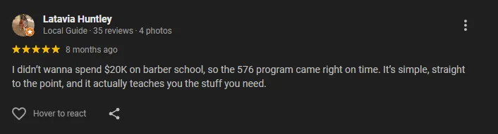 Enrollment in this program does not guarantee passing the state board exam, obtaining licensure, or meeting the requirements of any state’s barbering board. Students are responsible for understanding and fulfilling the specific requirements of their state, which may include additional exams, fees, or prerequisites. For further guidance, we encourage you to contact your state’s licensing board directly to verify eligibility and requirements.